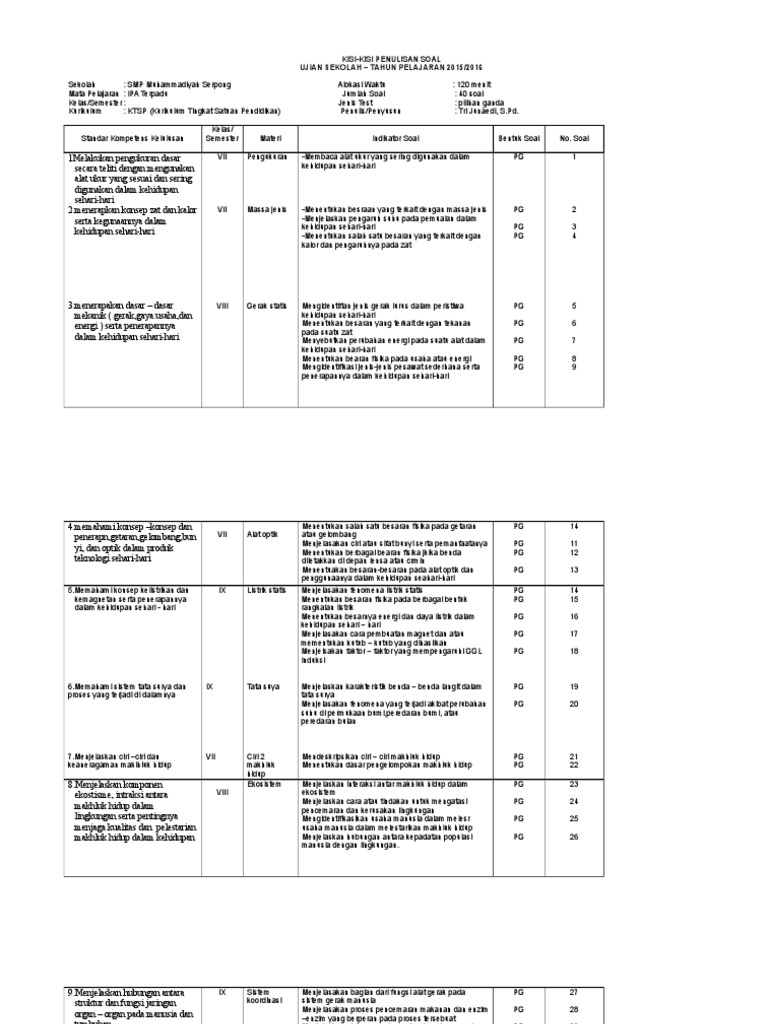 Kisi-Kisi Ujian Sekolah Ipa Smp 2021 - Latihan Soal Ujian Nasional Un Ipa Smp Tahun 2021 Elearning Web Guru / Soal ucun bahasa inggris dan soal ucun ipa.